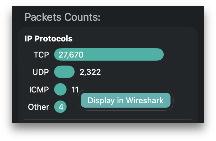 Control-clicking on an element in these locations and selecting “Display in Wireshark” launches the app with the appropriate display filters for the packets associated with each location.